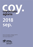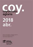 La Coyuntura Agraria se publica mensualmente y analiza la evolución agronómica de los distintos cultivos y el desarrollo de los mercados tanto en las producciones agrícolas como en las ganaderas. Ofrece además información meteorológica -temperaturas y precipitaciones- y la situación de los embalses.