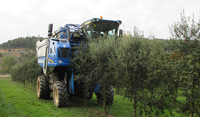 La recolección de la oliva en las parcelas productivas se realiza de forma mecanizada. En las parcelas con marcos de plantación intensivos, se emplea un equipo de recolección mediante vibración y lona extensible, acoplado a un tractor, mientras que en las parcelas en superintensivo, se usa una cosechadora autopropulsada que recoge la oliva mediante bastones vibrantes. La oliva se cosecha por variedades, ya que los aceites que se producen como producto institucional se envasan como monovarietales, y seguidamente se procesa en la Almazara Experimental.