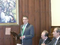 Santo Domingo de la Calzada, 10 de mayo de 2011. El Consejero de Obras Públicas, Antonino Burgos, ha presidido en la Casa de la Cofradía del Santo la entrega de medallas Hermanos del Santo, un acto instaurado en 2009 y que supone un reconocimiento a aquéllos Ingenieros de Caminos con una dilatada experiencia profesional en el ámbito del desarrollo de infraestructuras viarias.