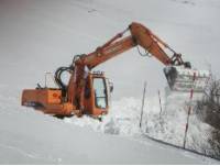 - Turbo-Fresadora de nieve forntal SCHMIDT modelo FS90 con anchura de trabajo de 2.400 mm y altura de 1.300 mm, con diámetro de tambor de 900 mm, capacidad de limpieza de 1.200 t/h y chimenea lanzadora orientable, con giro de 360º.