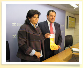 El Gerente de la Agencia de Desarrollo Económico de La Rioja (ADER), Javier Ureña, y la Directora General de Trabajo, Industria y Comercio, Concepción Arruga, han presentado esta mañana la campaña "Esta Navidad regala en positivo", una actuación de promoción del comercio riojano que pondrá en marcha el Gobierno de La Rioja para dinamizar las ventas durante el periodo navideño.