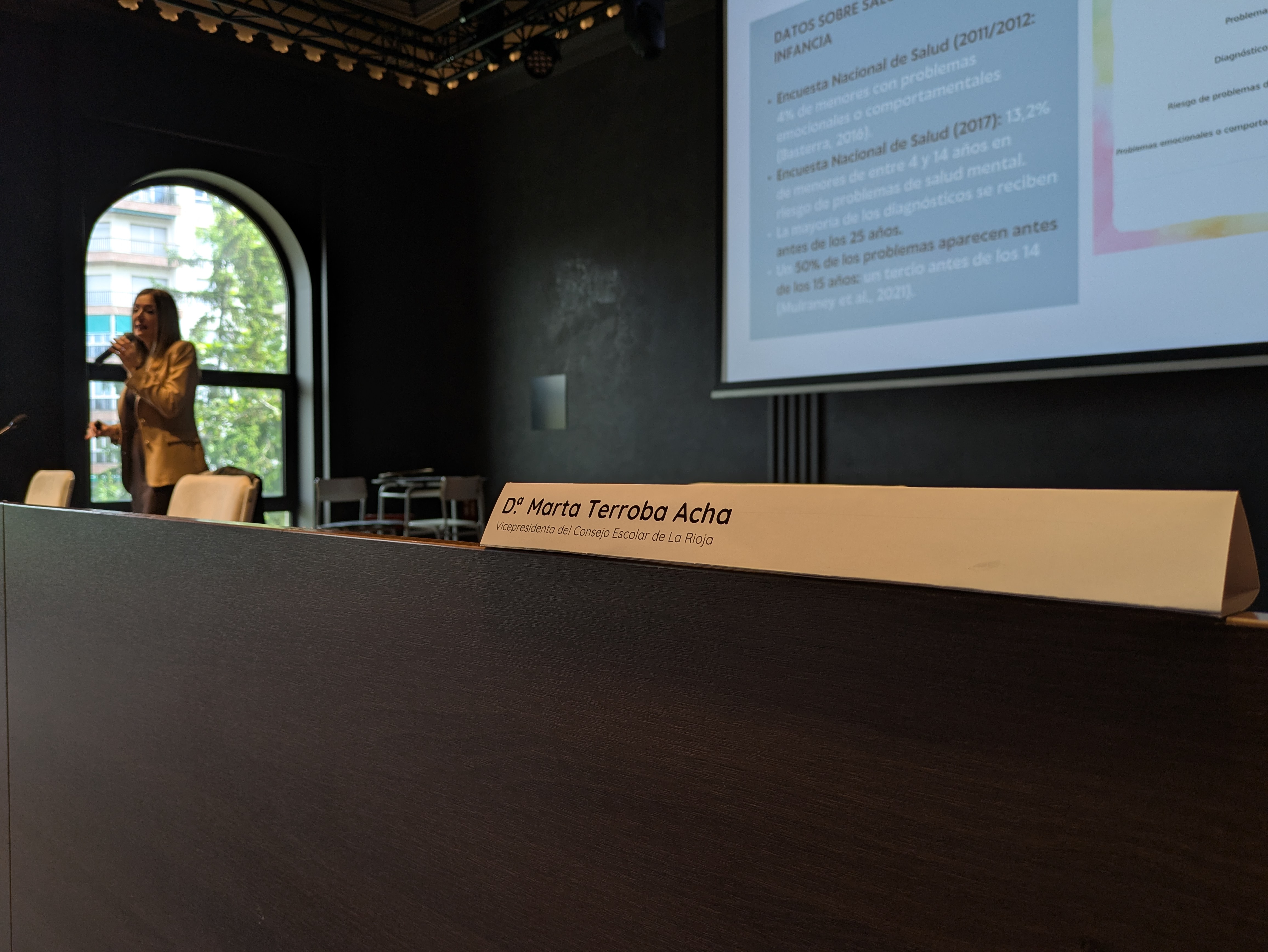 La siguiente ponencia fue de Dña. Marta Terroba Acha, vicepresidenta del Consejo Escolar de La Rioja y directora del CEIP La Guindalera, titulada: "Pequeños corazones, grandes emociones: el compromiso del CEIP La Guindalera con la salud mental infantil".