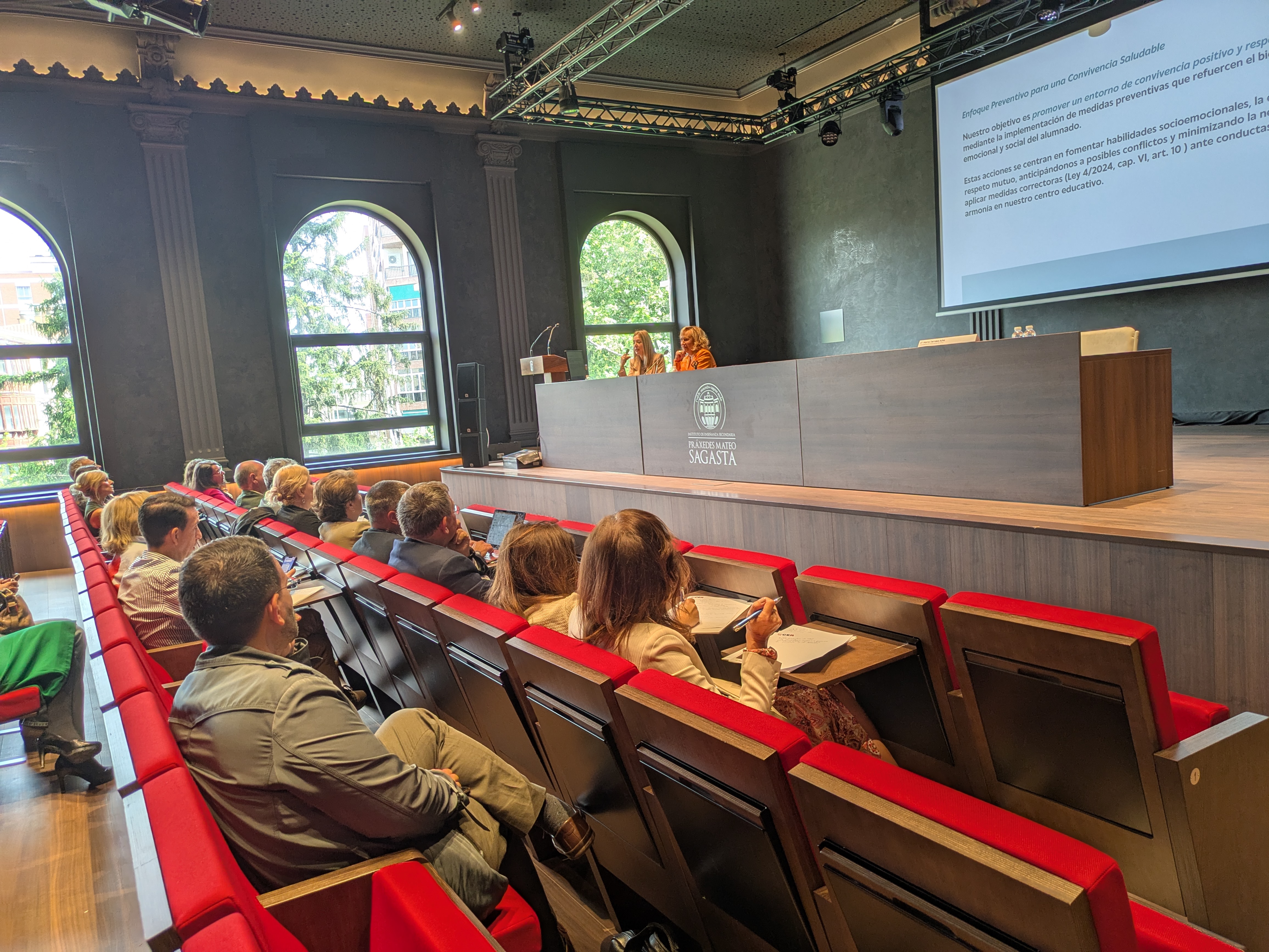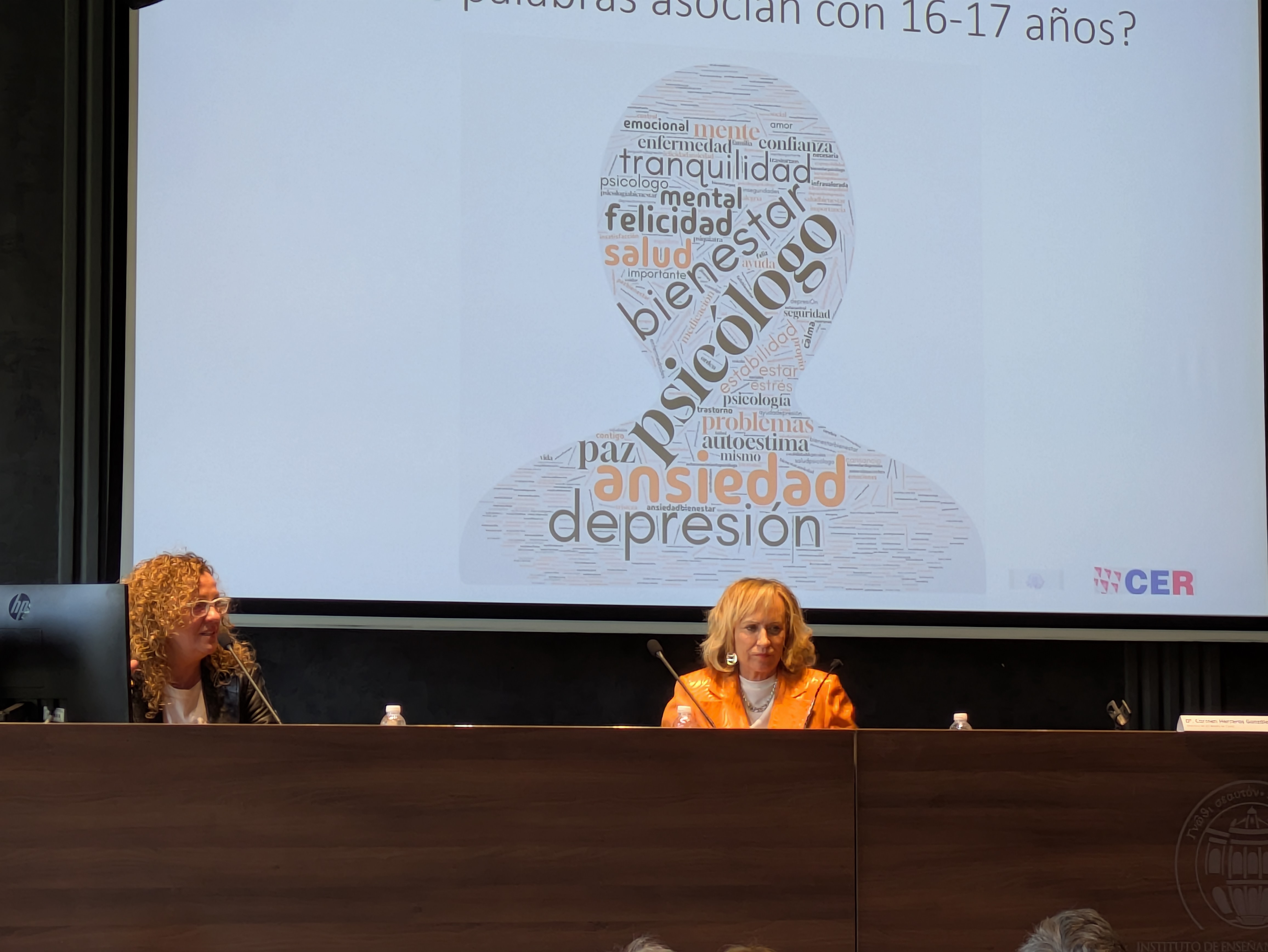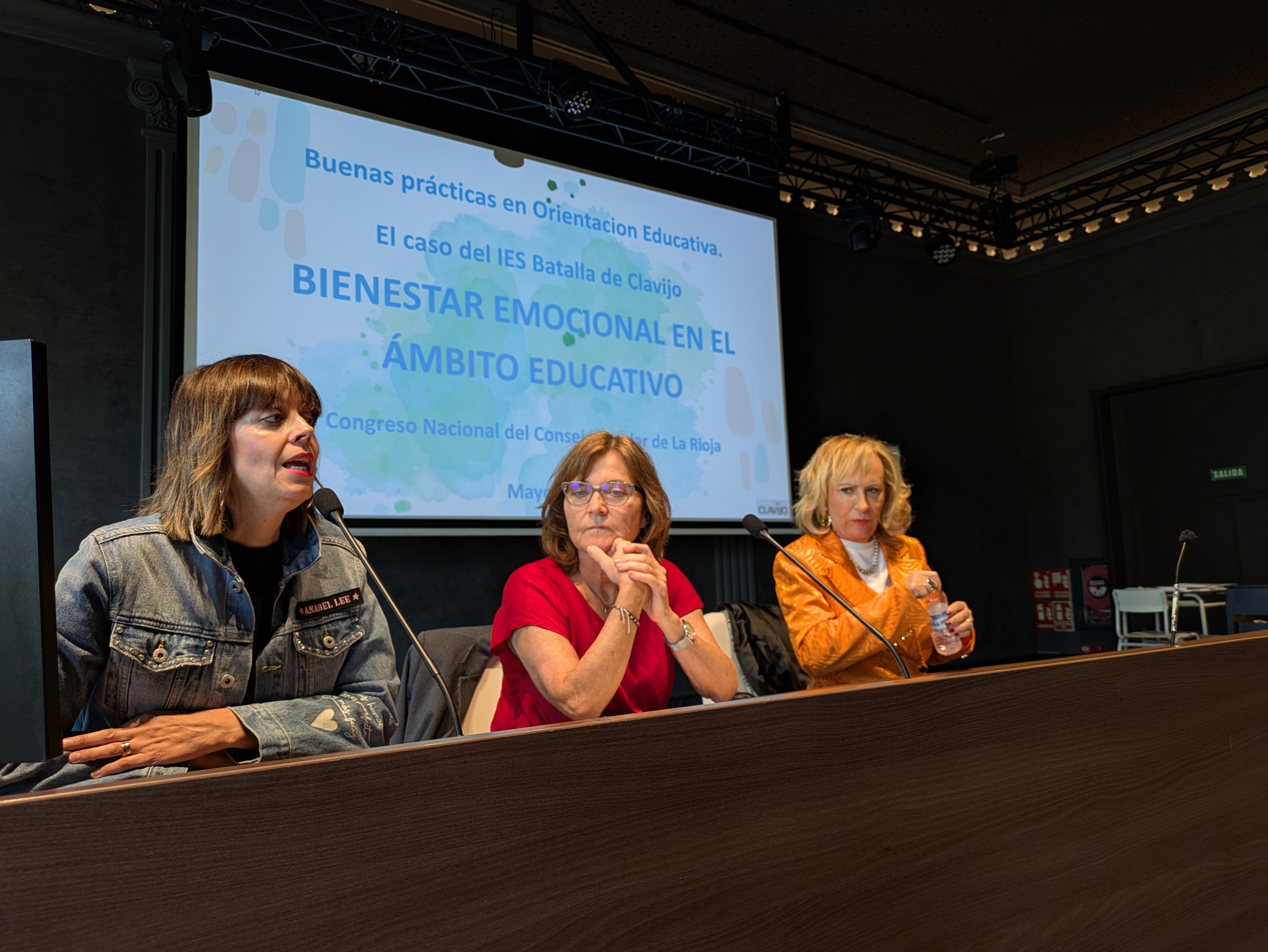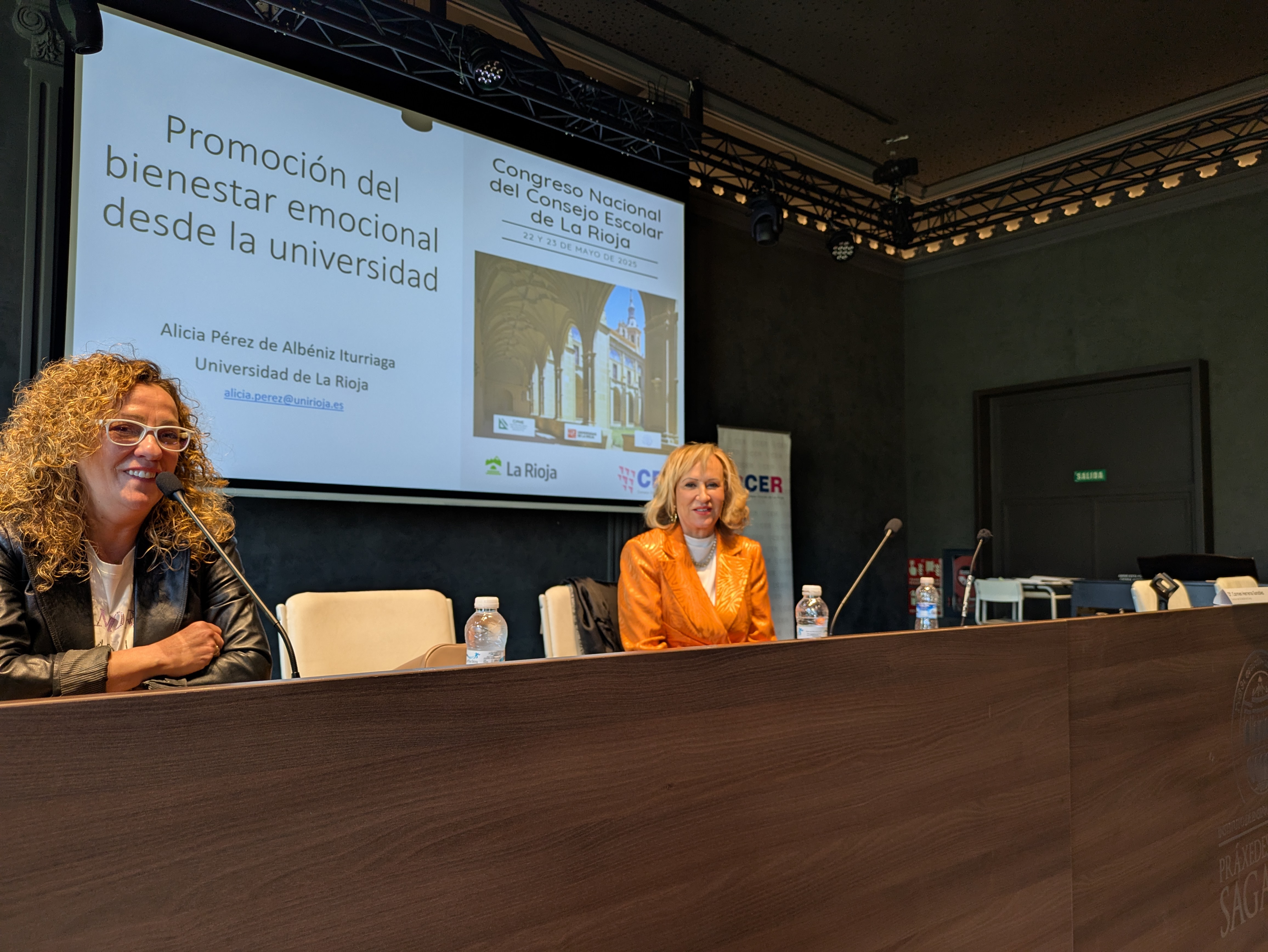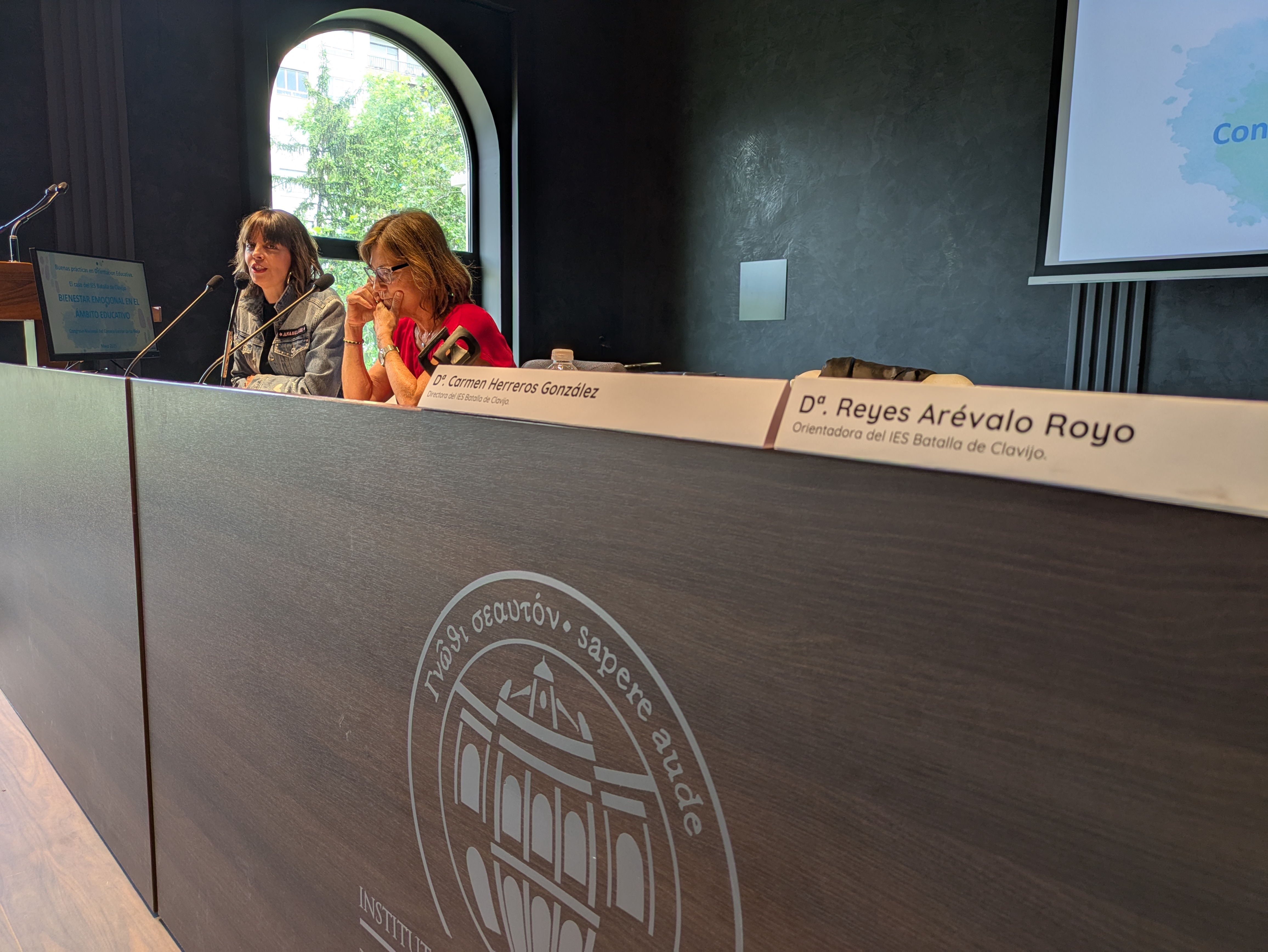 A continuación, Dña. Reyes Arévalo Royo y Dña. Carmen Herreros González, orientadora y directora del IES Batalla de Clavijo, ofrecieron la ponencia: "Bienestar emocional en el ámbito educativo".