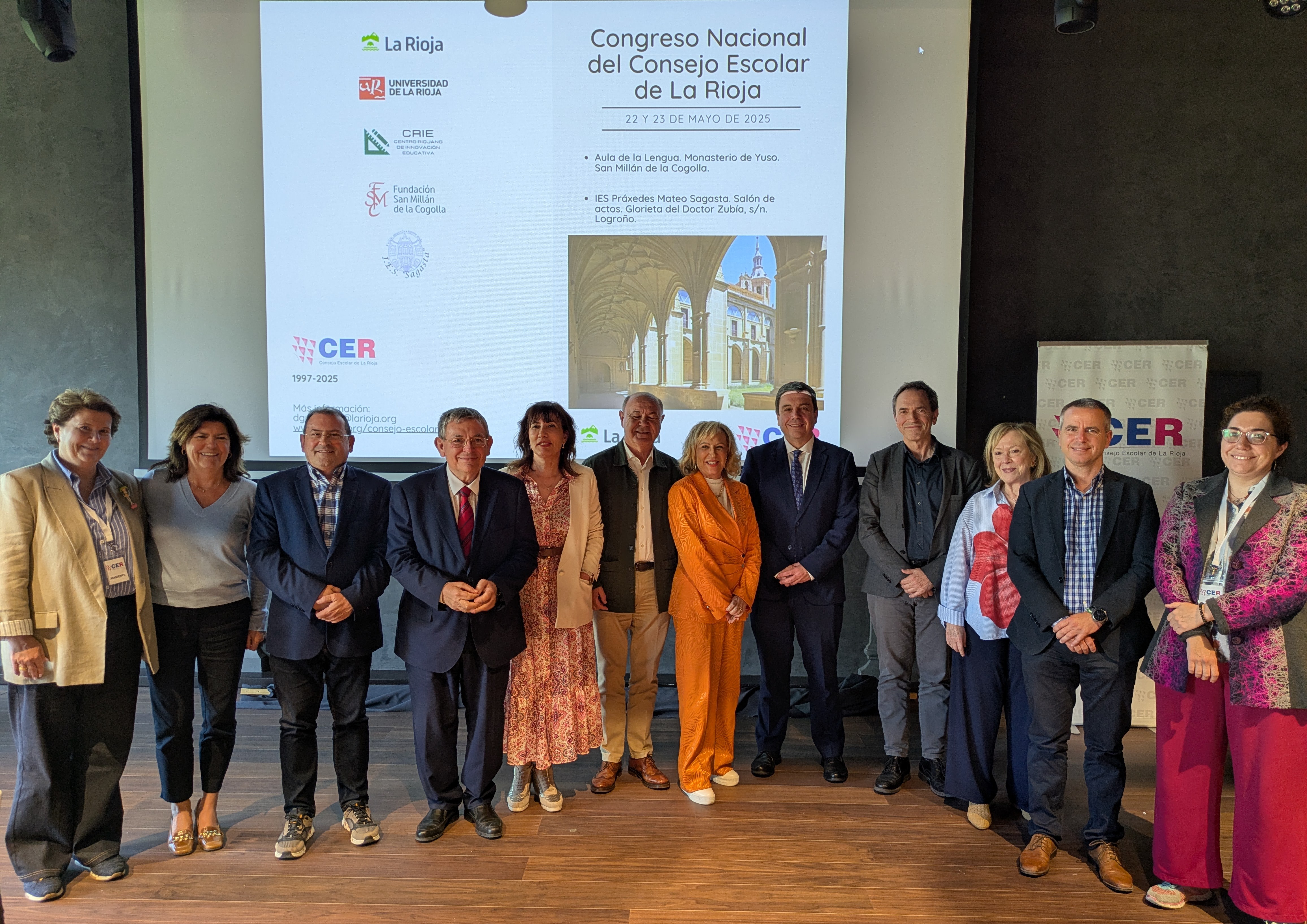 Queremos agradecer profundamente la participación del Secretario General del Consejo Escolar del Estado, de los/las presidentes y consejeros/as de los Consejos Escolares autonómicos que se acercaron a nuestra comunidad, así como de los/las ponentes, representantes institucionales, orientadores/as, directores/as y docentes de diferentes centros educativos, investigadores/as, asociaciones y entidades colaboradoras. Gracias también a todos los miembros del Consejo Escolar de La Rioja que han trabajado intensamente para hacer de este Congreso un espacio cálido, útil y enriquecedor. Vuestra presencia y vuestras muestras de cariño y reconocimiento, recibidas tanto durante como después del evento, nos llenan de orgullo y nos motivan a seguir trabajando por una educación de calidad, inclusiva y emocionalmente sostenible.