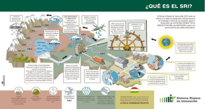 El Sistema Riojano de Innovación se define en la Ley 3/2009 de Ciencia, Tecnología e Innovación de La Rioja, como TODOS los agentes, estructuras e instrumentos públicos y privados, que participan activamente en el desarrollo de la capacidad de innovación de la región, estableciendo entre si a lo largo del proceso de innovación múltiples interconexiones.
