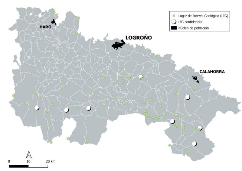Mapa con los Lugares de Interés Geológico de La Rioja